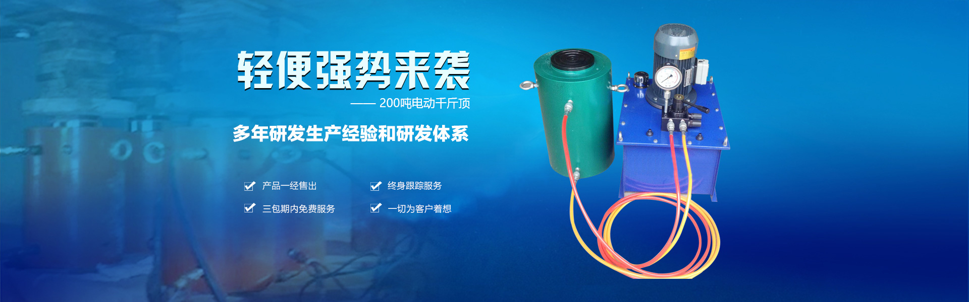 德州格恩液壓機(jī)械有限公司是國(guó)內(nèi)生產(chǎn)超高壓機(jī)具的骨干企業(yè)。產(chǎn)品品種主要涵蓋液壓千斤頂、電動(dòng)千斤頂、電動(dòng)液壓千斤頂、分離式千斤頂、同步千斤頂、大噸位千斤頂、頂管千斤頂、大噸位液壓千斤頂、分離式千斤頂、液壓電動(dòng)泵、電動(dòng)泵、手動(dòng)泵、機(jī)動(dòng)泵及泵站、工具缸等各種超高壓元件、附件和機(jī)具,也可根據(jù)客戶(hù)需要研發(fā)各種液壓系統(tǒng)液壓機(jī)具。 有多年研發(fā)生產(chǎn)經(jīng)驗(yàn)和研發(fā)體系,公司產(chǎn)品覆蓋面廣,產(chǎn)品質(zhì)量過(guò)硬。 產(chǎn)品一經(jīng)售出,終身跟蹤服務(wù),三包期內(nèi)免費(fèi)服務(wù),一切為客戶(hù)著想。 公司作為高品質(zhì)的液壓電動(dòng)泵,手動(dòng)泵,電動(dòng)泵,液壓千斤頂液壓產(chǎn)品的生產(chǎn)企業(yè),不斷創(chuàng)新開(kāi)發(fā)產(chǎn)品。格恩“以人為本、科技創(chuàng)新、以顧客滿(mǎn)意為宗旨”的經(jīng)營(yíng)理念。具有高素質(zhì)的專(zhuān)業(yè)技術(shù)人才和精良的制造設(shè)備以及高明的檢測(cè)手段和高精度檢測(cè)設(shè)備,足以保證高品質(zhì)的產(chǎn)品質(zhì)量和完善的售后服務(wù)......更多